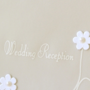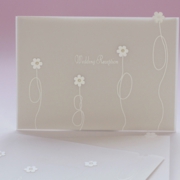 トレーシングペーパーの袋の中に四つ折りの席次表が入ります。 お花模様と淡い色合いががかわいくて個性的。 お写真やプロフィールなど印刷するとオリジナル感がアップ。