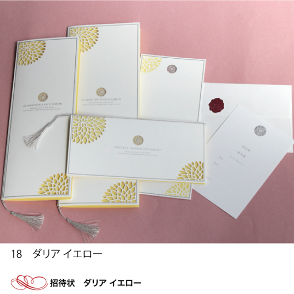 外カバー、色中紙、ビーズ付房リボン、封筒、出欠ハガキ、シール