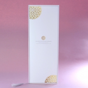 ダリアの花のモチーフをレーザー抜き型加工で表現。