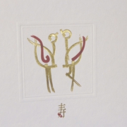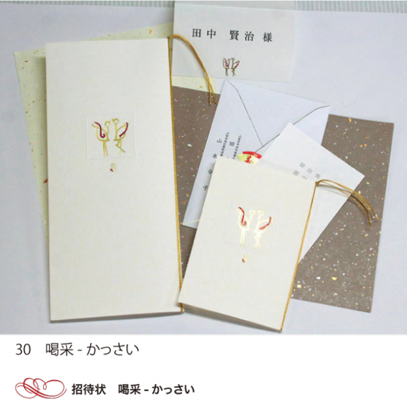 金箔の鶴とアクセントの赤がお洒落な和を演出しています。 やさしい風合いと凛とした美しさのある席次表です。