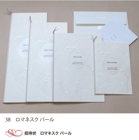 外カバー、中紙、ゴムリボン、封筒、出欠ハガキ、シール 例えば:50 セット(印刷込み)▶17,000 円