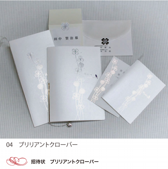 幸運を呼ぶと言われる四つ葉のクローバーをモチーフにした、 クローバーのホログラムが白く輝く 清楚な印象の席次表です。