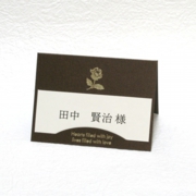 チョコレートブラウンにゴールドのバラが印象的なです。 上品さとかわいらしさを感じさせる席次表です。